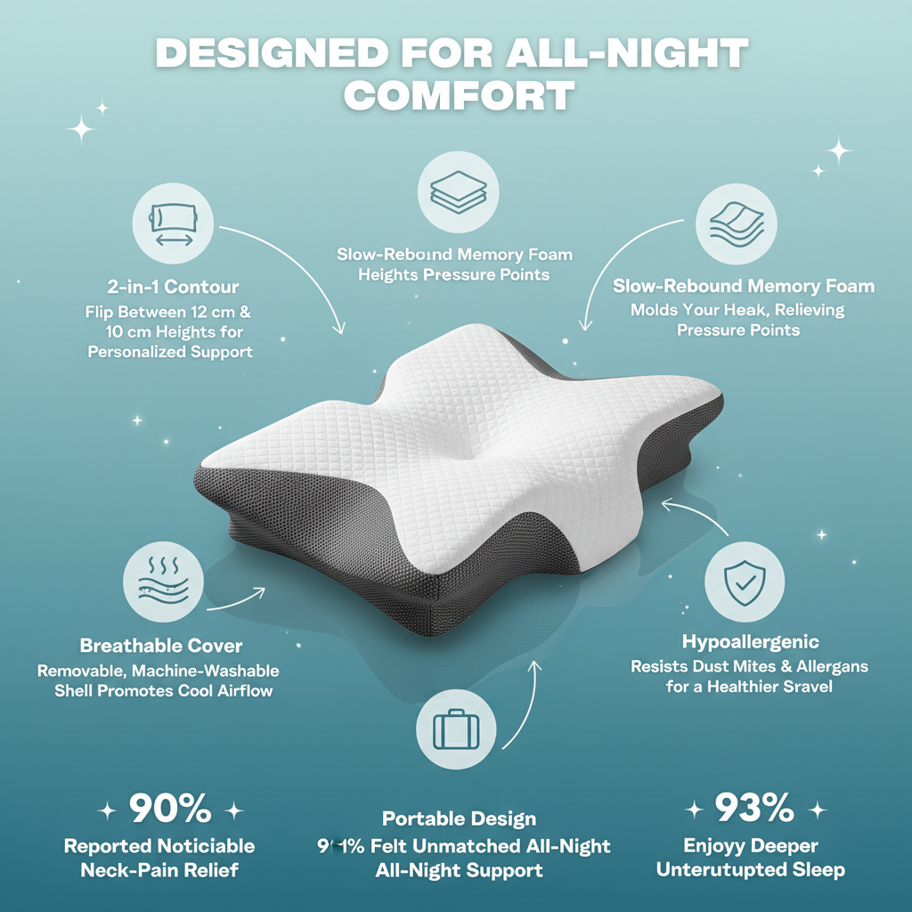 Experience unmatched neck support and wake up pain-free. Join thousands who have transformed their rest.
